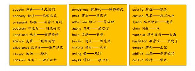 对于个别英语单词,谐音法是比较好玩有趣的记忆方法。例如:
